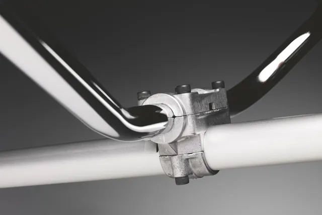 La barra de mango está unido al tubo por una pinza de fundición a presión para una gran durabilidad. -