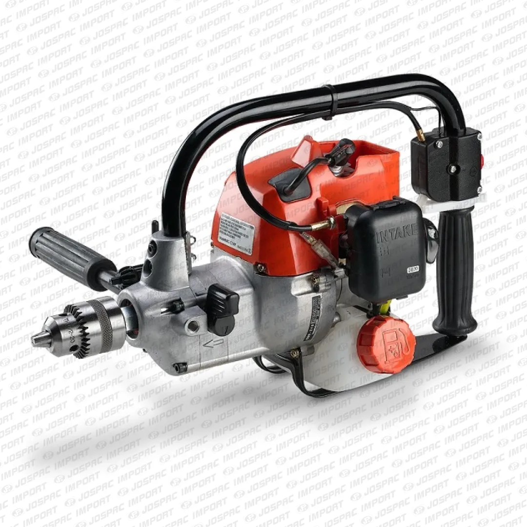 La caja de engranajes posee un reducción óptima que convierte y transmite eficazmente la potencia del motor y potencia de torsión para una perforación contundente. Su carburador a diafragma permite el uso en cualquier posición, dado que esta equipado con una bomba de depuración que permite que el taladro sea operado sin inconveniente en cualquier ángulo. El manillar frontal es sumamente ergonómico y permite sostener el equipo eficientemente en cualquier posición de uso y ante cualquier dificultad.