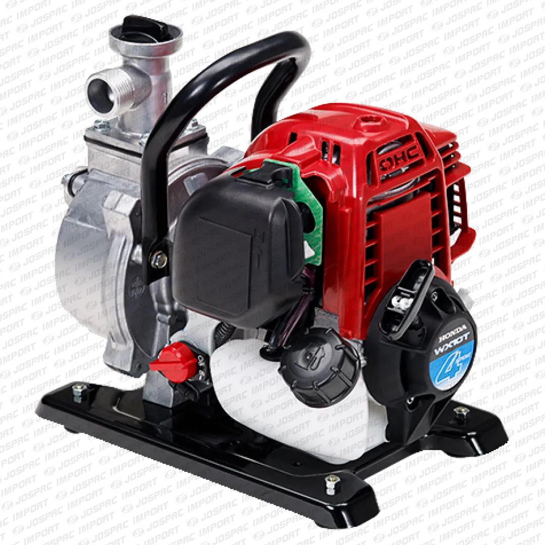 Motobomba con diámetro de succión y descarga de 1 pulgada. Ideal para traslado de líquidos con pocos elementos sólidos. Gracias al motor de cuatro tiempos GX25 acoplado se pueden realizar labores en terrenos inclinados.